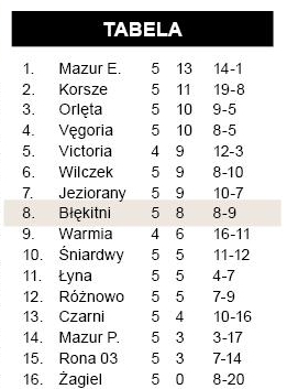 GLKS Jonkowo – Fortuna Gągławki 1:1, KS Łęgajny – Senior Świątki 0:4, Burza Słupy -Błękitni Stary Olsztyn 4:4.