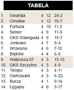 Gwardia i Omulew najwyraźniej bardzo poważnie myślą o awansie do klasy okręgowej – mówi o tym tabela po czterech kolejkach.