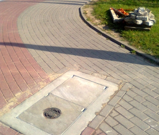 Co w Szczytnie i innych polskich miastach jest niemal pewne, gdy sprzątane są ulice? Ano to, że po utworzonych blisko krawężników pryzmach z piachem zdąży coś niejednokrotnie przejechać, zanim nazajutrz albo później przybędzie zaprzyjaźniona ekipa, która załaduje wszystko na pakę. Podobnie wyglądają inne równie skomplikowane logistycznie działania wymagające wykonania niemal równolegle dwóch czynności. Nie inaczej było ze studzienką telekomunikacyjną przy ul. Chrobrego. Jeszcze podczas wakacji pokrywa pękła i zrobiło się trochę niebezpiecznie. Ktoś w końcu ogrodził to palikami i taśmą. Wreszcie przybyła ekipa i pokrywę wymieniła. Ale że to Polska właśnie, widać parę metrów dalej (fot. 7). Gdy „Kurek” robił owo zdjęcie, paliki, taśma i resztki pokrywy czekały sobie na zabranie od ponad tygodnia.