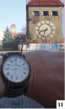 Niżej podpisany, gdy do „Kurka” jeszcze nie pisywał i był, powiedzmy, małym kurczaczkiem, święcie wierzył, że w środku nocy tata wstaje i przestawia wskazówki wszystkich zegarków w domu. O owym przestawianiu z trzeciej na drugą mówią i mówiły przed laty media... To, że przestawianie dokonywane jest niekoniecznie w połączeniu z zarywaniem nocy, każdy dorosły doskonale wie. W rozmaitych urządzeniach dokonywane jest ono automatycznie. Problem pojawia się w przypadku większych i starszych mechanizmów – np. ratuszowych zegarów. Pamiętamy, że przed laty zdarzało się nam w październikową lub marcową niedzielę widzieć po południu „starą” godzinę na tarczy zegara na wieży w Szczytnie. Teraz już rano wszystko było w należytym porządku (fot. 11)