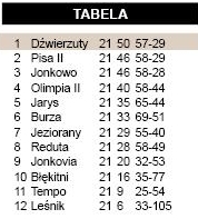 Na kolejkę przed końcem rozgrywek w Dźwierzutach doczekano się awansu do klasy okręgowej. Swoje zadanie odpowiednio w niedzielę wykonali gospodarze, ale swój wkład wniósł nieoczekiwanie wicelider z Jonkowa, który wysoko przegrał na własnym boisku i powiększył stratę do 4 punktów. Bohaterem decydującego meczu sezonu został Elsner, który strzelił dwie bramki, a przy trzecim golu zaliczył asystę. W końcówce na boisku pojawił się także współtwórca sukcesu, czyli trener Jarosław Szpyrka.