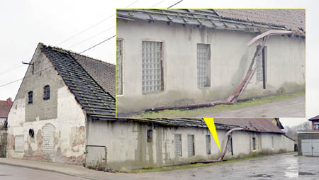 Na ul. Polnej w Szczytnie stoi zrujnowany parterowy budynek. W czasach PRL-u służył za magazyn spółdzielni PSS, a po zmianach ustrojowych przeszedł na własność starostwa. Sprzedało ono budowlę wraz z działką prywatnemu inwestorowi, pochodzącemu spoza naszego miasta. Zaraz potem rozpoczął się nawet remont obiektu. Wymienione zostały m. in. okna i drzwi, a także rynny. Niestety, wkrótce potem słuch o inwestorze zaginął, a budynek zaczął popadać w ruinę. Odpadał z niego tynk, spadały dachówki, a ostatnio urwały się rynny i to na dość długim odcinku. Szczęściem nikt nie przechodził obok, więc rynny nikomu nie spadły na głowę.
