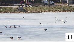 Swoje dodaje też budząca się do życia przyroda. Po śnieżnym pożegnaniu zimy zrobiło się wyraźnie cieplej, a różnica między temperaturą minimalną a maksymalną w pierwszym tygodniu wiosny wyniosła, bagatela, prawie 30 stopni. Mimo że w minioną sobotę termometry wskazywały w granicach 18 kresek powyżej zera, po mocno już kruchym lodzie na mniejszym z naszych jezior przechadzało się w najlepsze ptactwo wodne (fot. 11).