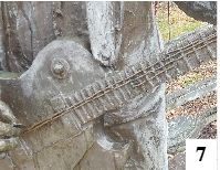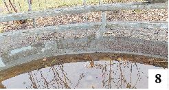 Jednym z ważniejszych punktów Szczytna są pomniki Klenczona. O starszym z nich pisaliśmy ostatnio – właśnie został odświeżony i prezentuje się co najmniej dobrze. Gorzej z pomnikiem nowszym, który pojawił się w czasach, gdy powstawały nasze ścieżki pieszo-rowerowe. Chcieliśmy przyjrzeć się dokładniej jego wyglądowi na tydzień przed 40. rocznicą śmierci popularnego muzyka związanego ze Szczytnem. Pomnik znajduje się między ruinami zamku a kościołem baptystów. Niestety, przestrzeń związana z upamiętnieniem Klenczona czeka na generalny porządek (fot. 6). Przez lata (pomnik powstał w 2009 r.) poznikała część strun gitary (fot. 7). Może dla niektórych to coś w rodzaju relikwii, a może po prostu materiał nie wytrzymał zmiennych warunków atmosferycznych lub to efekt bezmyślności wandali. Na obrzeżach zbiornika na wodę umieszczono napisy – imię i nazwisko artysty oraz rok powstania pomnika. Zapiaszczenie sprawia, że tego ostatniego elementu ostatnio nie było widać (fot. 8). Niekiedy słabo widoczne są również dwa kluczowe słowa. Na dnie zalegają oczywiście zeszłoroczne liście. Wydaje się nam, że o tego typu miejscach warto pamiętać nie tylko przy okazji rocznic, świąt czy zmian pór roku. Szczytno odwiedzają różne osoby niezależnie od terminów i ich kroki często wiodą w stronę ciekawszych miejsc, które powinny być naszą wizytówką.