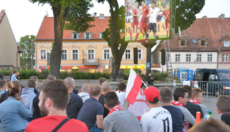 Wtedy spotykaliśmy się pod ekranem tłumnie, ale niestety, dość rzadko. Na zdjęciu scenka z meczu Polska - Niemcy podczas Mistrzostw Europy w 2016 r. Dlatego naszym zdaniem wato byłoby postarać się o to, skoro już tablica wisi, by pełniła bardziej pożyteczną rolę. Mogłyby być na niej, naszym zdaniem, wyświetlane informacje np. dla przyjezdnych. Może warto byłoby podawać aktualne dane o warunkach drogowych – temperaturę powietrza, temperaturę nawierzchni ważniejszych dróg, a zimą np. stan oblodzenia szos i dodać jeszcze napis w stylu: Szczytno wita! Ale nie tylko. Można byłoby pokusić się o krótkie informacje dla turystów – co warte jest obejrzenia na naszym mieście. Może puszczać krótkie filmiki pokazujące dany obiekt, czy choćby tylko jego zdjęcia. Zamiast standardowych reklam-okienek, niechby była inna ich forma – gdzie tanio i smacznie zjeść, gdzie przenocować, wreszcie gdzie się ostrzyć, czy zmienić fryzurę, itp., itd., nie wyłączając informacji o rejsach wspomnianego wcześniej stateczku wycieczkowego.
