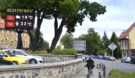 W mieście są trzy duże tablice elektroniczne, a największa wisi tuż przy rondzie pod ratuszem i jako jedyna pozostaje pod zarządem miejskim. Jej głównym zadaniem jest wyświetlanie reklam, których raczej nikt nie ogląda. Jakieś zainteresowanie wzbudzają jedynie wyświetlane informacje związane z „Dniami i Nocami Szczytna”, czy innymi tego typu imprezami. Jednak gwoli prawdy dodajmy, że zdarzały się i niezapomniane chwile pod tą tablicą. Działo się to podczas transmitowania występów naszej narodowej drużyny piłkarskiej na Mistrzostwach Świata czy Europy.