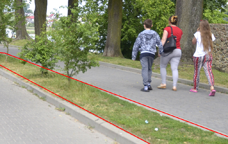 Żeby zamiast małych drzewek ciągnął się pas niskich roślin o wielobarwnych kwiatach (obszar oznaczony czerwonymi liniami.