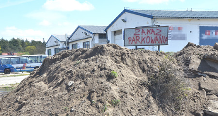 W innym punkcie miasta, na terenie byłej bazy PKS trwają gorączkowe roboty. W miejscu starej stacji paliw wyłania się nowa, gdzie indziej widać głębokie wykopy. A jak są wykopy muszą być i nasypy. Właśnie czymś takim, czyli zwałem ziemi przykryto miejsce, gdzie nie wolno było zostawiać samochodów. Tablica jednak pozostała. Teraz, gdyby ktoś miał ochotę zaparkować na szczycie górki, dostaje informację, że jest to zakazane.