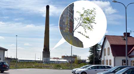 Między ul. Krzywą a Wileńską rozciąga się spora, ale pusta działka, nad którą króluje samotny, dość wysoki komin. Służył on dawniej tartakowi, po którym dziś nie pozostał najmniejszy ślad. Teraz komin stoi sobie, a muzom, nie służąc nikomu i niczemu. Ale czy na pewno? Gdy dokładniej mu się przypatrzyliśmy zauważyliśmy, że w miejscu, w którym wyraźnie się zwęża, na czymś w rodzaju gzymsu wyrosło sobie drzewko. Na razie nie jest duże i trudno je wypatrzeć, ale rośnie dzięki kominowi na wysokościach, nie nękane przez wandali.