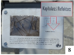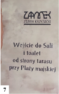 Na szczycieńskiej plaży dziś wypoczywają mieszkańcy i turyści, kiedyś kąpali się tu Majowie. Tak co najmniej wynika z jednej z kartek informacyjnych umieszczonych w rejonie zrewitalizowanych ruin zamkowych (fot. 7). Mamy tam odniesienie do plaży majskiej, czyli właśnie Majów. Niestety, potem przybyli Krzyżacy i bezwzględnie Majów wytępili ogniem, mieczem i czym się jeszcze dało. Swoje knowania rycerze zakonni przeprowadzali w reflektarzu (fot. 8) . Nam się wydawało, że tego typu miejsce nazywa się refektarzem, ale ci, którzy umieszczają podobne teksty w tak ważnym turystycznie miejscu muszą przecież wiedzieć lepiej. Uwaga ta dotyczy także nadużywania w naszym języku dużej litery (wiadome fragmenty tekstu z fot. 7).