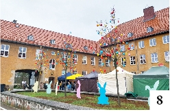 Na jarmarku bożonarodzeniowym powinien być lekki mróz z dodatkiem białego puchu, podczas jarmarku wielkanocnego wskazane byłoby błękitne niebo i wyraźnie dodatnia temperatura. Pogoda nie zawsze bywa sprzymierzeńcem organizatorów, czego przykładem sobotnia impreza w Szczytnie pn. „Wielkanoc na Zamku”. Siąpiący z przerwami deszcz na pewno miał negatywny wpływ na frekwencję, ale i tak nie zabrakło chętnych, by przyjść pod zrewitalizowane ruiny zamku nazywane dość często – choćby w celach marketingowych – zamkiem. Liczba stoisk może i była umiarkowana, ale każdy chętny, jeśli faktycznie chciał, mógł coś zjeść lub kupić ciekawą świąteczną ozdobę. W przypadku braku funduszy można było chłonąć przedwielkanocny klimat – popatrzeć na ozdoby, które witały wchodzących na teren zamkowych ruin (fot. 7) i zdobiły ratuszowy dziedziniec (fot. 8).