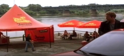 Olaf Lubaszenko, grający w tym filmie doktora filozofii, wysiada z taksówki, idzie nadwiślańskim bulwarem na poważną rozmowę o życiu ze swoim dziekanem, w którego wciela się ojciec aktora – Edward. A na bulwarze - niby przypadkiem - parasole z logo znanym wielu mieszkańcom naszego miasta (fot.10).