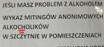 Jak to często bywa z alkoholem, w tym z piwem, wiadomo – trzeba zachować umiar. Szkodzić może także samo myślenie o alkoholu, niekoniecznie związane z chęcią zajrzenia do kieliszka. Przykładem jest ogłoszenie zamieszczone na jednej z tablic informacyjnych w Szczytnie. Autorzy intencje mieli jak najbardziej trzeźwe, ale efekt wygląda trochę, jakby pisane to było po spożyciu (fot. 11).