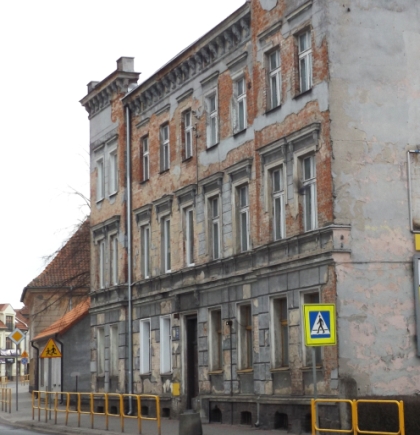 Na gruntowny remont pieniędzy pewnie nie ma, ale jakoś też nikt nie wpadł na pomysł, żeby postawić choćby jakąś tabliczkę ostrzegawczą w stylu spotykanego w górach znaku A-25 „spadające odłamki skalne”. Bo przecież „jakoś to będzie” i co już miało spaść, to spadło. Nieco inny problem pojawia się na kamienicy znajdującej się skrzyżowaniu ulic Odrodzenia i 3 Maja. Tutaj tynk na przechodniów nie spada, grozić może jedynie… kontakt z latającymi płatami farby. Czy to kwestia niewłaściwego przygotowania podłoża, czy niewłaściwej jakości farby – trudno tego dociec. Budynek, leżący podobnie jak wcześniej opisywane w centrum miasta, wygląda specyficznie i mieszkańców swoją prezencją raczej nie cieszy (fot. 13).{/akeebasubs}