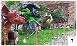 W ruinach naszego zamku mamy duchy i figury postaci kojarzących się z „Krzyżakami”, ale przecież obiekty tego typu – i to znacznie większe – znajdują się także w innych miastach naszego województwa. Tam także próbują przyciągnąć turystów. Na zamku w nieodległym Reszlu (fot. 6) , a konkretnie na dziedzińcu, urządzono wystawę innych bohaterów mających swój związek z zamkami – smokami. Są to postacie rodem z filmów, głównie animowanych (fot. 7) . Fani tego typu produkcji powinni rozpoznać postacie ze „Shreka” czy „Jak wytresować smoka”. Atrakcje atrakcjami, ale u nas na razie wszystko jest za darmo. Pewna trzyoosobowa rodzinka ze Szczytna, za przyjemność oglądania od środka reszelskiego zamku musiała zapłacić w sumie ponad 100 złotych…