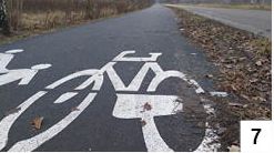 Wprawdzie teraz zrobiło się nieco zimniej, ale pogodę w ubiegłym tygodniu mieliśmy taką, że aż zachęciła ona niejedną osobę do rowerowych przejeżdżek. Temperatura zdecydowanie na plusie, sporo słońca, słaby wiatr - czego miłośnicy dwóch kółek mogą pod koniec stycznia chcieć więcej? Skorzystaliśmy z okazji i pojeździliśmy sobie tędy i owędy. Trafiliśmy m.in. na krótką ścieżkę (jedną z najnowszych w naszym powiecie) prowadzącą z Leśnego Dworu w kierunku Strugi. Niestety, tylko przez mniej więcej kilometr, bo potem znów trzeba wrócić na wąską asfaltówkę. Od razu dostrzegliśmy, że na krawędzi ścieżki zainstalowano co kilka metrów odblaski, by przypadkiem nie wjechać na drogę (fot. 7). Pewnie trochę to kosztowało, ale czego nie robi się dla poprawienia bezpieczeństwa. Byłoby jeszcze lepiej, gdyby jakoś zagospodarowano wąski pas oddzielający szosę od ścieżki. Ten i ów odblask jest przysłonięty roślinnością, opadłymi liśćmi i piachem (fot. 8) - z oczywistych powodów przestaje spełniać swoją funkcję.