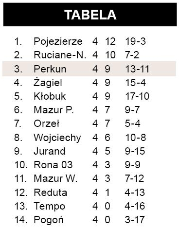Zespół Perkuna potrafił podnieść się po klęsce sprzed tygodnia i odniósł raczej nieoczekiwane zwycięstwo nad spadkowiczem z okręgówki. Goście przetrwali trudną dla nich pierwszą połowę, a po zmianie stron zaczęli nadawać ton boiskowym wydarzeniom. Mazur próbował gonić wynik, ale w doliczonym czasie Opalach rozwiał nadzieje gospodarzy na wywalczenie choćby punktu.