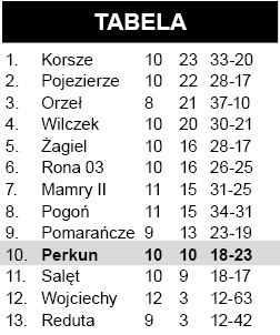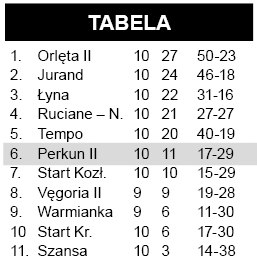 Bramki dla Perkuna: Krystian Piecychna (63.), Gabriel Sachajczuk (76.)