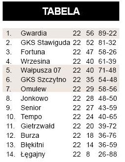 W meczu na szczycie Gwardia zawiodła na całej linii i rozegrała najsłabszy mecz w sezonie. Swojego rozczarowania nie kryje trener Mariusz Korczakowski. – Zagraliśmy bardzo słabo. Pierwsza połowa to katastrofa – stwierdza bez ogródek. - To był najgorszy mecz, od kiedy prowadzę Szczytno. Może się nie wstrzeliłem z taktyką. Wystąpiliśmy po raz pierwszy na wiosnę z czwórką obrońców – szkoleniowiec próbuje doszukiwać się przyczyn porażki. Wspomina przy tym o problemach kadrowych. Podopiecznym trenera Korczakowskiego nie wychodziło niemal nic – od wyprowadzania piłki spod własnej bramki po konstruowanie w miarę składnych akcji. Prób strzeleckich było jak na lekarstwo. Od pierwszych minut inicjatywę przejęła drużyna ze Stawigudy, która umiejętnym pressingiem i szybkością rozgrywania piłki zupełnie zdominowała szczytnian. Lider po raz pierwszy w tym sezonie nie wygrał u siebie i przerwał jednocześnie serię meczów (rozpoczętą na inaugurację) ze zdobywaną co najmniej jedną bramką. Przewaga nad GKS-em skurczyła się z niedawnych dziewięciu do zaledwie czterech punktów.