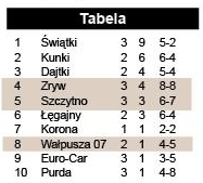 Zespół Zrywu nie może na razie wykorzystać atutu własnego boiska. W niedzielę gospodarze objęli wprawdzie szybko prowadzenie, ale goście równie szybko odpowiedzieli zdobyciem dwóch bramek. W końcówce, po doprowadzeniu do remisu, miejscowi osiągnęli znaczną przewagę. - Biliśmy po 5-6 rzutów rożnych i nic – mówi kierownik Zrywu Andrzej Obrębski.