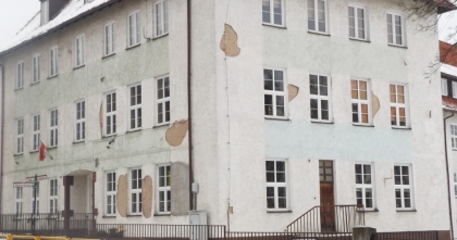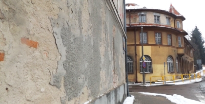 Co mamy tam jednak w tej chwili? Tuż za placem budowy znajduje się umiarkowanie atrakcyjna bryła budynku, w którym do niedawna mieścił się zakład zajmujący się naprawą sprzętu RTV. Obecnie ulokowana jest tam kwiaciarnia, której właściciele postarali się o lifting samego budynku i jego najbliższego otoczenia. Odrobinę dalej postawiono wyglądająca dość smętnie budkę, w której nic już nie jest sprzedawane, a kolejnym obiektem jest gmach Zespołu Szkół nr 1. Jego stan od strony ul. Mickiewicza budzi niepokój (fot. 9). Remontu elewacji dokonywano w czasach niekoniecznie zamierzchłych, ale gołym okiem widać, że widoczne na zdjęciu dwie ściany prezentują się nie najlepiej, a tynk najwyraźniej zamierza odpadać dalej. Od strony ul. Konopnickiej, czyli tam gdzie znajduje się wejście główne, obiekt wygląda lepiej, a uszczerbek jest tylko w jednym miejscu.