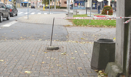 Są to pozostałości po rurkach podtrzymujących tablicę drogowskazową, która stała w tym miejscu. Rurki, niestety obcięto dość wysoko i sterczą teraz dobre kilka centymetrów nad poziomem chodnika. Nieostrożny przechodzień, dziecko lub dziewczyna w szpilkach może łatwo się o nie potknąć lub zgoła wywrócić.
