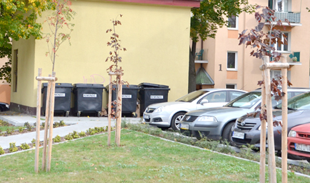 W ubiegłym tygodniu otrzymaliśmy sygnał od mieszkańca bloku stojącego przy skrzyżowaniu ul. Warszawskiej z Odrodzenia, że drzewka posadzone na nowo urządzonym skwerku uschły, bo nie były podlewane. Na miejscu stwierdziliśmy, że nie jest aż tak źle. Drzewka na ogół mają się dobrze, mała jarzębina wydała nawet owoce, czyli musiała być podlewana. Tylko dwie sadzonki wyglądają nieco gorzej, ale wiadomo, że nie każda roślina dobrze się przyjmuje. Natomiast naszą uwagę zwróciło co innego – plastikowe pojemniki na odpadki niesegregowane. Administrator, czyli SM „Odrodzenie” wycofuje się z użytkowania „żelaźniaków”, czyli obskurnych metalowych kontenerów, na rzecz mniejszych i estetyczniejszych pojemników plastikowych. Takie właśnie stoją na skwerku, ale wedle zapewnień miały być dodatkowo ukryte w altance, której akurat nie widać.