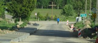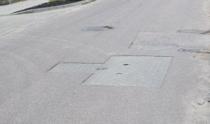 Łączone bywają także nawierzchnie ulic. Gdy z jakichś powodów powstanie w asfalcie dziura, można ją wypełnić chociażby polbrukiem. Tak jest np. w paru miejscach na ul. Osiedleńczej (fot. 12).