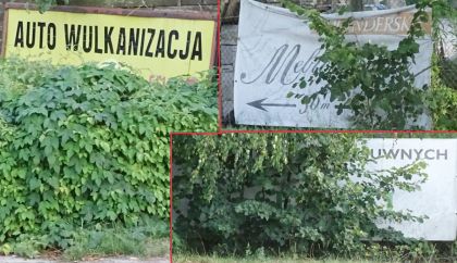 Reklama jest dźwignią handlu – pod warunkiem, że dźwignia nie jest w jakiś sposób zablokowana. Hamować ją może… roślinność, której nikt nie chce przyciąć. Taką serię zasłoniętych reklam spotkamy np. na ul. Moniuszki w Szczytnie (fot. 9). Na nieczytelnych banerach traci głównie reklamodawca, trochę gorzej sprawa się przedstawia z zasłoniętymi znakami drogowymi – to pogorszenie stanu bezpieczeństwa, a najlepszym razie dezorientowanie kierowców. Oto przykłady zamaskowanych znaków z uliczki osiedlowej w bezpośrednim sąsiedztwie hali Wagnera (fot. 10.). Dla zainteresowanych dodamy, że na słupie z jasnoniebieską tabliczką znajduje się jeszcze jedna, zupełnie niewidoczna.