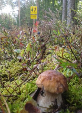W lasach sporo jest także nietypowych jak na maślaki (bo bez kleistej skórki) maślaków pstrych, znanych pod nazwą siniaków czy jakubków. „Kurka”, podczas przemieszczania się po okolicznych kniejch, trochę zaniepokoiło to, że wycinane są ich fragmenty między Korpelami, Sędańskiem i Janowem (fot. 4), a więc tam, gdzie lubiliśmy sobie to i owo zebrać. Znikł też drzewostan w rejonie szczycieńskiego stadionu WSPol. W miejscach jak to na fot. 5, ze zniszczoną grzybnią, znaleźć można coś tylko przypadkiem. „Kurek” zastanawia się, dlaczego niekiedy w środku lasu, tuż przed miejscem, w które specjalnie się wybraliśmy, musimy natrafić znienacka na zakaz wstępu spowodowany wycinką – i to właśnie w najlepszym miesiącu sezonu grzybowego. Na otarcie łez pozostaje np. borowik, który zechciał wyrosnąć przed strefą zakazaną (fot. 6). Niestety, przestrzeń rozpoczynająca się parę metrów dalej jest z grzybiarskiego punktu widzenia prawdopodobnie stracona na lata.