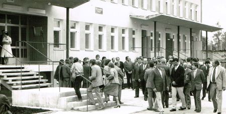 Kontynuując - przy poparciu władz polityczno – administracyjnych miasta Szczytna, zabraliśmy się za budowę przychodni lekarskiej na ul. Kościuszki 20. Była to głośna sprawa, temat omawiany na wszystkich spotkaniach powiatowych i wojewódzkich. Projekt, czyli dokumentacj budowlaną, zastosowaliśmy typową, powtarzalną. Zimą 1982/1983 rok uzyskaliśmy wszystkie niezbędne a brakujące dokumenty, jak decyzję o warunkach zabudowy, pozwolenie na budowę itd. Doprojektowaliśmy doprowadzenie wody, gazu, prądu itp. Wczesną wiosną 1983 roku rozpoczęliśmy zadanie, które realizował nasz własny zakład remontowo – budowlany. Inwestycja została zrealizowana błyskawicznie. 19 lipca odsłonięto tablicę pamiątkową z nazwą przychodni: „Imienia 40-lecia PRL”. W dniu 22 Lipca, w Święto Odrodzenia Polski uroczyście przekazywaliśmy przychodnię dla ludu pracującego miasta Szczytna. Zerknijcie na ten już historyczny kadr, mnie szczególnie widać, bo wystroiłem się w granatową marynarkę. Po mojej lewej stronie, to kierownik szpitalnego laboratorium mgr farm. Janusz Łazowski, który w późniejszym czasie został współwłaścicielem apteki „Lwowskiej” w Szczytnie. Za mną idzie zastępca naczelnika miasta mgr inż. Andrzej Wołowski, obok naczelnik miasta Szczytna dr Jan Hoffman, przy nim dyrektor Wydziału Zdrowia Urzędu Wojewódzkiego z Olsztyna lek. stom. Marek Michniewicz. Najbardziej łysy, po prawej mojej stronie to minister zdrowia, a obok niego, wicewojewoda olsztyński mgr Jan Chudy.