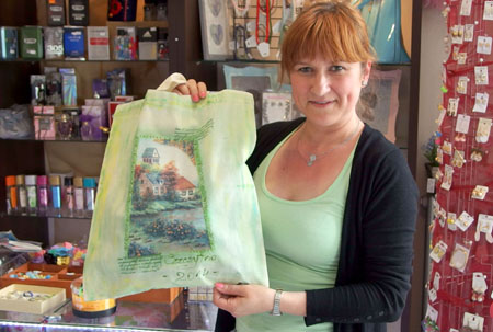 W innej niedużej szczycieńskiej placówce o nazwie „Zszywka” - Sklepik Rzeczy Ładnych także możemy nabyć miejscowe pamiątki. Tutaj rzuca się w oczy coś dla łasuchów – ogromne lizaki z napisami „Szczytno 2015”, ale są też i mniejszych rozmiarów. Poza tym sklep oferuje tradycyjne magnesy na lodówki, pocztówki, czy breloczki, w sumie niby typowy, niczym się nie wyróżniający asortyment. Jednak „Zszywka”, prowadzona przez olsztyniankę, Annę Kochańską, proponuje coś więcej. Unikatowe pamiątki wykonane własnoręcznie przez właścicielkę, w oryginalnej technice decupage. Są to wręcz małe dzieła sztuki, ręcznie zdobione torebki na zakupy w kilku rozmiarach, ale też odpowiednia jest ich cena – ponad 20 zł za większy rozmiar.