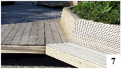 Minęło zaledwie kilka miesięcy i nowo postawione siedziska na placu Juranda są do co najmniej częściowego odświeżenia. Odwiedzający centrum miasta na ogół po nich nie skakali i nie chodzili, nie jesteśmy nawet pewni, czy każde z miejsc było w czasie sezonu zajęte. Wystarczyło jednak trochę słońca, trochę deszczu i warstwa ochronna poziomych komponentów ławeczek wygląda na poważnie zużytą (fot. 7) . Taki to już urok współczesnych mebli czy elementów małej architektury – lepiej nie dotykać, nie przesuwać i nie wystawiać na działanie warunków atmosferycznych. Gdy byliśmy ostatnio w Mikołajkach (o czym pisaliśmy paręnaście wersów wcześniej), widzieliśmy całe mnóstwo analogicznych ławek, dość ciekawie wkomponowanych w otoczenie – niektóre stanowiły przedłużenie chodnika, by za moment stać się siedziskami. Lakier zszedł tam tak samo jak u nas.