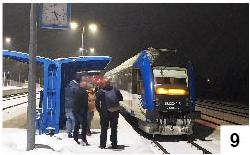 W ostatnich miesiącach trwały prace remontowe na odcinku Wielbark- Chorzele. Pozwolą one na razie na uzyskanie prędkości 60 km/h, która po zdobyciu pozwoleń ma być podniesiona do 80 km/h. W niedzielę zmienił się rozkład jazdy i na stacji w Szczytnie pojawił się wczesnym wieczorem pierwszy skład do Chorzel (fot. 9). Przyjazd wyszedł dość osobliwie. Kobiecy głos z megafonu obwieścił, że pociąg już stoi, a następnie, że odjeżdża, choć jeszcze nie przybył z Olsztyna. Szynobus pojawił się na peronie z lekkim poślizgiem. Jak się okazało, na wyświetlaczu jako stacja docelowa pojawiało się Szczytno. Sytuację musiały ratować tekturowe tabliczki (fot. 10). W stronę Chorzel udało się debiutanckim kursem kilkanaścioro osób. Drugi pociąg do miasteczka nad Orzycem odjechał około godz. 22.00. Taka późna pora jest uzasadniona tym, że w poniedziałkowy ranek musi w Chorzelach być tabor, który zabierze już więcej pasażerów do szkół i pracy w Szczytnie czy Olsztynie. Przejazd ze Szczytna do Chorzel zajmuje w tej chwili 40 minut. W dni powszednie kursów jest więcej, bo cztery. Pociągi są skomunikowane z szynobusami Kolei Mazowieckich kursującymi między Chorzelami i Ostrołęką. Do końca roku cena jest bardzo atrakcyjna – przejazd na trasie Chorzele – Ostrołęka to zaledwie 4,20 zł, a do tego dochodzą rozmaite zniżki. Co ciekawe, w popularnej wyszukiwarce rozład-pkp.pl. nie wyskoczyło nam na razie skomunikowanie w Chorzelach. W niedzielę pojawiały się informacje albo o braku połączeń, albo o podróżowaniu przez cały dzień przez Olsztyn i Warszawę.