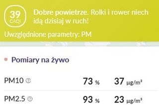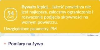 Trochę straszymy tym nie do końca zdrowym powietrzem w centrum Szczytna (był to na skali wynik średni), ale z ciekawości (oczywiście czystej) postanowiliśmy sprawdzić, jak z owymi zanieczyszczeniami jest w innych miejscach. Polska, niestety, zajmuje wysokie miejsce na negatywnej liście miast europejskich borykających się z problemem zanieczyszczonego powietrza. W naszym województwie o rzeczonej godz. 17 bardzo niedobrze było w Dobrym Mieście – wskaźnik przekroczył 100. Najmniej sympatyczny kolor na mapie mieliśmy pod Krakowem, gdzie stopień zanieczyszczenia zbliżał się do 200. Tam to dopiero byłby problem ze zdrową imprezą plenerową…