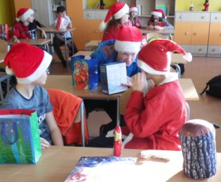 większości placówek w Polsce) istnieje tradycja kupowania sobie prezentów przez dzieci i młodzież (fot. 10). Odbywa się to drogą losowania i choć teoretycznie prezenty powinny być od koleżanek i kolegów anonimowych dla obdarowywanych, i tak na koniec dnia nauki wszyscy wiedzą, kto kogo wylosował.