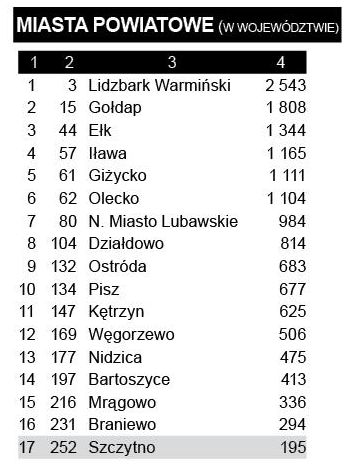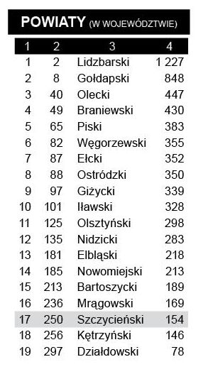 Słabo w klasyfikacji powiatów prezentuje się szczycieński, zajmując z kwotą 154 zł trzecie miejsce od końca w województwie.{akeebasubs !*}