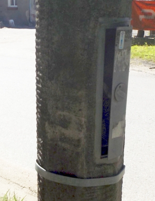 Jakiś czas temu pisaliśmy o nadjeziornej lampie, z której ktoś odkręcił drzwiczki broniące dostępu do instalacji. Niebezpieczeństwo zażegnano, choć trwało to chyba zbyt długo. Podobny problem pojawił się ostatnio także na ul. Kolejowej, o czym doniósł nam nasz Czytelnik pan Tadeusz (notabene ten od opisywanej wcześniej lampy). Tu klapa jest przytwierdzana obejmą (z jakichś powodów jednak poluzowaną) i teraz wrota, których dotykać powinna tylko osoba uprawniona, czekają sobie na ziemi (fot. 10). Niebezpieczeństwo zainteresowania się wnętrzem słupa np. przez ciekawskie dzieci pojawiło się także parę lamp dalej – tam również z obejmą coś jest nie tak (fot. 11).
