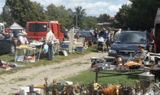 Nieco starsi Czytelnicy „Kurka” pamiętają z pewnością fakt, że jeszcze nie tak dawno temu do Szczytna i ze Szczytna jeździły w wybranych relacjach autobusy kursujące jedynie we wtorki i piątki, czyli u nas dni targowe. Dziś rynek otwarty jest praktycznie – poza niedzielami i świętami – przez cały tydzień. Inna sprawa, że ludzi tu jakby mniej. Zupełnie inny dzień otwarcia ma nieco inne targowisko, zwane giełdą staroci. Organizowana jest ona od parunastu lat w niedzielę w Olszynach, przy wyjeździe z tej wioski w stronę Ostrołęki. Zjeżdżają się tu handlarze z innych powiatów i województw ościennych, oferując najrozmaitszy towar (fot. 9). Niektóre drobiazgi można kupić dosłownie za złotówkę. Jest i asortyment znacznie droższy, ale handlujący niejednokrotnie z miejsca obniżają cenę.