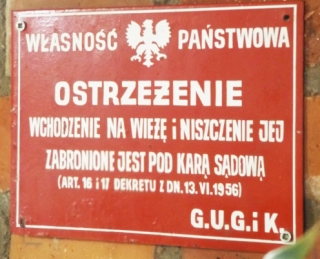 Kilka lat temu pisaliśmy o wieży ciśnień w Gołdapi – po renowacji stała się ona m.in. ciekawym architektonicznie punktem widokowym. Od ponad 10 lat można wejść na podobną wieżę w Giżycku (fot. 6), podziwiać stamtąd panoramę miasta, popijając kawę zakupioną w bufecie. W drodze na samą górę wspinający się mają okazję oglądać rozmaite wystawy. A jeszcze jakiś czas temu chętnych do podziwiania z wysoka uroków miasta witała tabliczka widoczna na fot. 7. Dzisiejsza wieża w Giżycku to turystyczna atrakcja, uwieczniona również na monetach wchodzących w skład serii poświęconej ciekawym obiektom Warmii i Mazur.