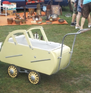 Ci, którzy lubią tego typu klimaty, mogą w Olszynach znaleźć coś dla siebie, ewentualnie ciekawie spędzić czas. Na ławach i plandekach znajdziemy wystawione wyroby rękodzielnicze, maszyny do pisania, monety, zabawki czy meble. Uwagę „Kurka” przyciągnęły popularne za komuny przypinki do mat ze znajdującymi się tam np. herbami polskich miast (fot. 10). Kiedyś można było to nabyć w większości kiosków. Wśród odwiedzających giełdę nie brak rodziców z dziećmi – te ostatnie zobaczą, w jakich wózkach spędzali czas niemowlęctwa ich rówieśnicy sprzed parudziesięciu lat (fot. 11). W Olszynach spotkamy również handlujących mającymi już swoje lata książkami. Z ciekawości możemy sięgnąć choćby do kilkutomowego dzieła opisującego (z niewłaściwej zapewne perspektywy) historię ZSRR. Inne pozycje ironicznego uśmieszku budzić nie powinny, ale czy znajdą nabywców?