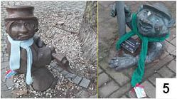 Ferie zimowe w pełni - choć zimowe są na razie tylko z nazwy. Temperatura pod koniec stycznia zrobiła się u nas wczesnowiosenna. Klimat próbuje robić szczycieńskie sztuczne lodowisko, na którym spędzają czas głównie młodsi mieszkańcy. O innych formach zimowego wypoczynku można na razie tylko pomarzyć. Kuligi, organizowane dość powszechnie jeszcze paręnaście lat temu, odeszły w niebyt. Miejmy nadzieję, że tylko chwilowo. Sanki i podobne pojazdy (dziś wytwarzane częściej z tworzywa sztucznego) czekają na klientów na sklepowych półkach. Ci nie do końca mają powody, by ów towar kupować - śnieg poleżał tylko pod koniec pierwszej połowy stycznia. Zaklinać zimę próbowali ostatnio uczniowie i nauczyciele szczycieńskiej Szkoły Podstawowej nr 6. Tuż przed rozpoczęciem ferii poubierali oni w szaliki nasze pofajdoki, by nie zmarzły (fot. 5) . Tym jednak jest dość ciepło, zwłaszcza za dnia, gdy temperatura sięgała 7-8 stopni na plusie. Z temperaturami panującymi zimą w ostatnich w ostatnich latach nieźle radzą sobie niektóre kwiaty, np. stokrotki i bratki, które można spotkać w styczniu. Pod koniec tego zimowego miesiąca zaskoczyła nas nawłoć (zwana również mimozą), obumierająca w październiku i listopadzie. Całkiem przyzwoicie wyglądający okaz tej rośliny widzieliśmy w dawnej zajezdni ZKM przy ul. Kościuszki (fot. 6).