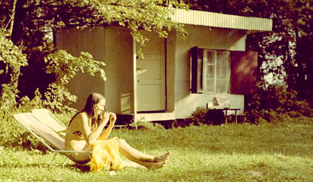 - Pomyślałem wówczas, że dzięki nim zrealizuję marzenia o domku nad wodą, wypadowej bazie do żeglowania – relacjonuje pan Ryszard. Udało mu się znaleźć ciekawą działkę w Starych Kiejkutach, w miejscu, gdzie mała rzeczka wpada do jeziora. Wraz z kolegami z pracy. m. in. Marianem Glinką, kupili wspomniane płyty, sam zaprojektował prosty i tani w budowie domek, po czym wszyscy zabrali się do budowania.