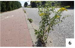 Zaniedbana jest ścieżka, zaniedbana jest odnowiona nie tak dawno droga asfaltowa. Między krawężnikami a szosą zbiera się piach, na którym rosną sobie rośliny (fot. 6), niektóre może i ładne, ale jednak potwierdzające brak porządku na całej tej trasie.