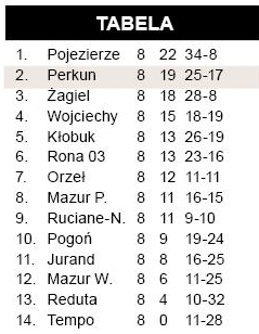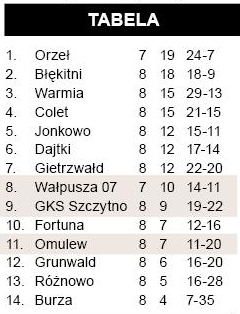 Nasze drużyny w miniony weekend grały niemal tradycyjnie ze zmiennym szczęściem. Dobrą dyspozycję podtrzymuje wciąż zespół Perkuna Orżyny. Zadyszkę złapała szczycieńska Gwardia, która w trzech ostatnich meczach wywalczyła tylko punkt, a w najbliższej kolejce czeka ją mecz z liderem z Reszla.