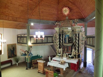 KOŚCIÓŁ Obecny kościół wzniesiono w miejscu starego w 1734 r. w konstrukcji ryglowej za czasów Michaela Sinagowitza, który był pastorem w Jerutkach w latach 1720-1758. Konstrukcja z drewnianych belek wypełniona została cegłą, którą następnie otynkowano na biało. Ołtarz główny wykonał w latach 1737-1738 Michał Kapicki, snycerza z Wielbarka. On też jest autorem rzeźby anioła chrzcielnego. Następcą Sinagowitza był w latach 1758-1772 jego syn Jan Krzysztof Sinagowitz, wcześniej w latach 1748 - 1749 pełniący funkcję rektora w miejscowej szkole. Kolejnym proboszczem był od 1772 r. do 1802 r. Jan Ernst Nordhoff. W latach 1802-1817 funkcję tę pełnił Samuel Ernst Riemer. Za jego kadencji w 1807 r. żołnierze francuscy okradli skarbiec kościelny. Jego następcą w latach 1818-1819 był Gottlieb Briese. Później przez 21 lat pastorem był Jakob Czygan. Za jego czasów, w 1821 r. dostawiono do kościoła od zachodu kwadratową wieżę. Na jej szczycie zachowała się chorągiewka z właśnie taką datą. Prawdopodobnie budowę wieży poprzedził pożar, który w znacznym stopniu kościół uszkodził. Na wieży zawieszono zakupiony za 684 talarów i ważący 912,5 funtów dzwon. W kościele znajdowały się już zakupione w 1710 r. i 1734 r. dwa dzwony, które w międzyczasie popękały. W 1858 r. zakupiono trzy nowe, odlane w Bochum, żeliwne dzwony. W 1822 r. dokonano również gruntownego remontu kościoła i plebanii.{akeebasubs !*}