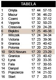 SKS Novum: Arasimowicz, Magnuszewski, Zyśk (62 Kacprzak.), Nowakowski, Banasiak (81. Pogorzelski), Chrzanowski, Pietrzak, Filipiak (76. Lech), Kulesik (68. Piórkowski), Kuchna, Augustyniak.