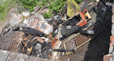 Wspomniana wyżej uliczka wiedzie także do sławetnej dziury po kinie „Jurand”, która zieje w ziemi już od... 9 lat(!). Jest ona co prawda ogrodzona blaszanym parkanem, ale nie nazbyt szczelnym. No i dlatego pomiędzy fragmentami murów stanowiących resztki podpiwniczenia walają się rozmaite domowe graty – jakieś kanapy, tapczany itp. Niektóre z tych byłych mebli są strawione ogniem - widać, że niedawno miał tu miejsce jakiś nieduży lokalny pożar. Czy wzniecony specjalnie, czy też przypadkowo – nie wiadomo. Zamiast komentarza warto w tym miejscu przytoczyć opinię naszej Czytelniczki, z czasów zaraz po zburzeniu kina: A było tu tak pięknie... Pierwsze kino na Warmii i Maurach z panoramicznym ekranem, pierwszy szerokoekranowy film: „Krzyżacy”, na który zjeżdżały się wycieczki z całego województwa...