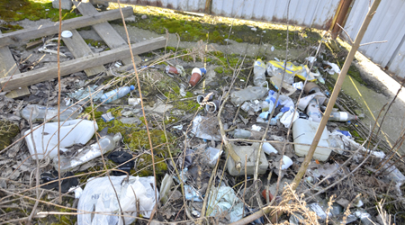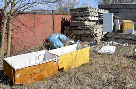 arkan okalający plac przy stacji benzynowej, jak wspomnieliśmy, nie jest w najlepszym stanie. Są w nim szczeliny, poprzez które łatwo przeniknąć do środka. Z tej sposobności korzysta wielu, bo tuż za ogrodzeniem, w zasadzie wzdłuż całej jego długości, rozciąga się wielkie śmieciowisko.