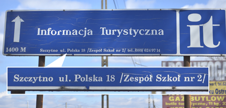 Po drugiej stronie ul. Pasymskiej, naprzeciw niedoszłej budowy hotelu stoi tablica wskazująca kierunek do punktu informacji turystycznej. Niedawno na jednym z posiedzeń Rady Miejskiej rozprawiano o tym, co by uczynić w kwestii uatrakcyjnienia miasta właśnie pod względem turystycznym. Są nowe pomysły, nowe projekty, ale wydaje się, że należy zacząć od spraw podstawowych, czyli rzetelnej informacji, a nie tumanienia przyjezdnych. Popatrzmy bowiem, co miasto podsuwa pod oczy turystom.